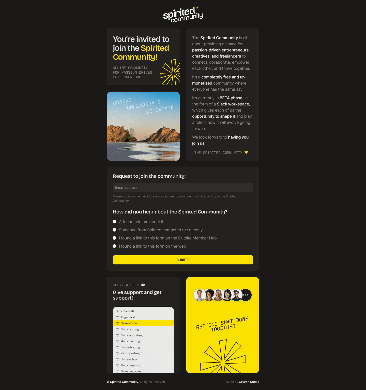 The Spirited Community is an online community for passion-driven entrepreneurs, creatives and freelancers. We participated in shaping the project, created the branding, and designed the product.