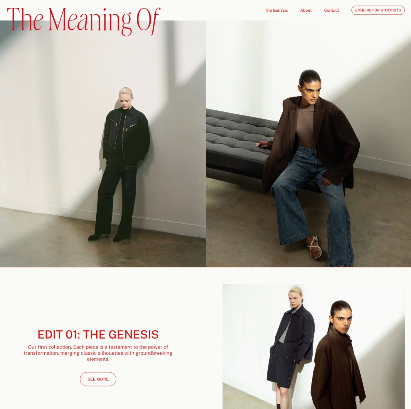 The Meaning Of is a clothing brand that set out to radically reimagine fashion, at the intersection of art, architecture and design. We designed and developed a website for them.